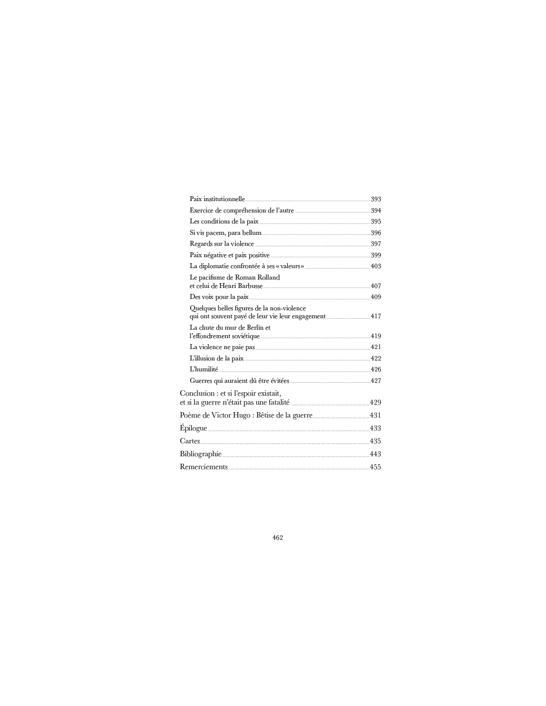 Pour pouvoir sérieusement envisager la paix, il faut d’abord bien comprendre les mécanismes des conflits armés. À partir de l’analyse de plusieurs guerres, il remonte dans la profondeur du temps, cherche les moments où la paix aurait pu être possible, mais où l’histoire a dérapé, il analyse les types de guerre, la dissuasion nucléaire, la notion très contestée de guerre juste, la psychologie de la guerre.