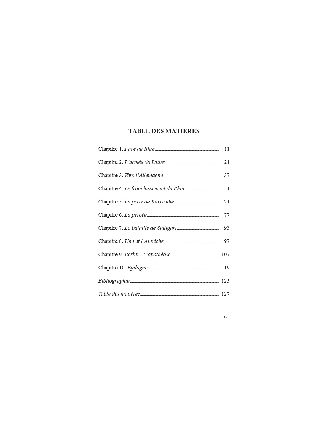 Février 1945, le général de Lattre de Tassigny avec sa Première Armée Française se retrouve face au Rhin. Il est le premier depuis Turenne et Napoléon à être en mesure de le franchir en combattant. Les Américains n'y sont pas favorables. Tant pis, soutenu et encouragé par le général de Gaulle, il franchit le Rhin de vive force le 31 mars 1945 à Gemmersheim. Il va écrire une de nos plus belles pages de gloire, aujourd'hui ignorée de bon nombre de Français, et conquérir notre zone d'occupation en Allemagne et donner à la France un siège permanent au Conseil de Sécurité des Nations Unies. L'épopée Rhin et Danube après être passée par Karlsruhe, Stuttgart, Ulm, Constance et l'Autriche se termine en apothéose à Berlin le 9 mai 1945 à 00 h 20 lorsque le général de Lattre signe au nom de la France l'acte de capitulation de l'Allemagne nazie.