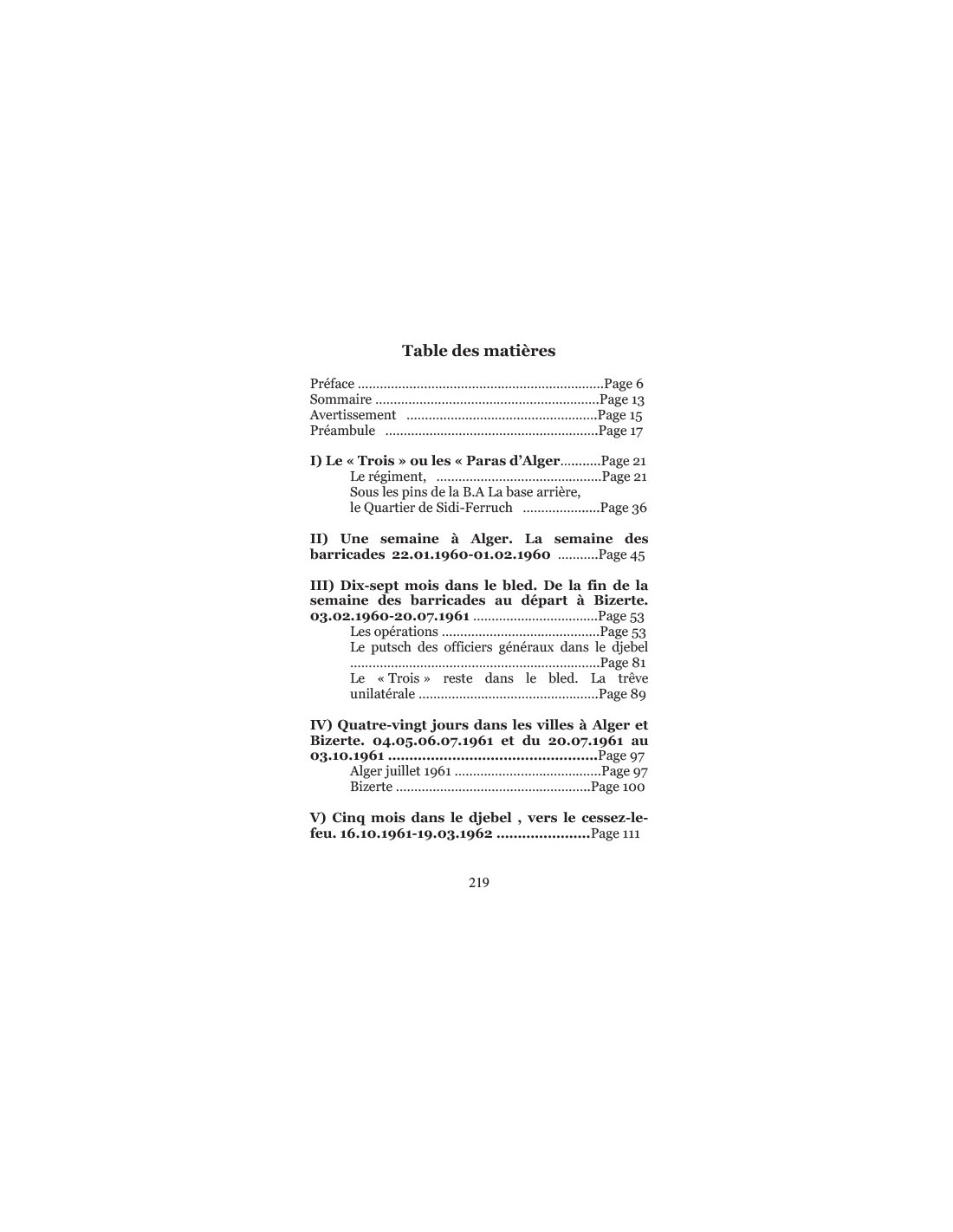 L'auteur était à l'époque chef de peloton à la compagnie portée du 3e RPIMa. Très lié à la communauté des pieds-noirs algérois, le jeune sous-lieutenant, devenu général, après avoir commandé à son tour ce régiment prestigieux, raconte le quotidien, les joies et les peines de ceux qui étaient communément appelés « les paras d'Alger ».