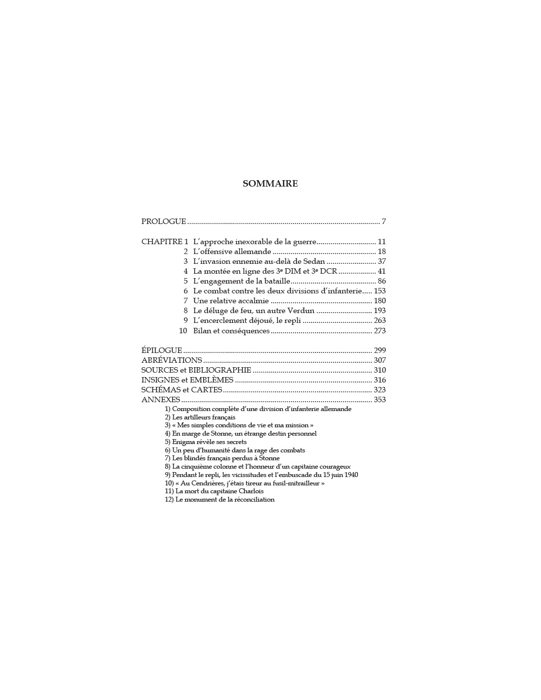 Le livre achevé, le lecteur aura pris pleinement conscience de la véritable dimension de ces luttes qui, malgré leur ampleur meurtrière, ne purent repousser la longue nuit qui recouvrit la France. Mais il aura reconnu la juste place des défenseurs de Stonne, celle de l'honneur.