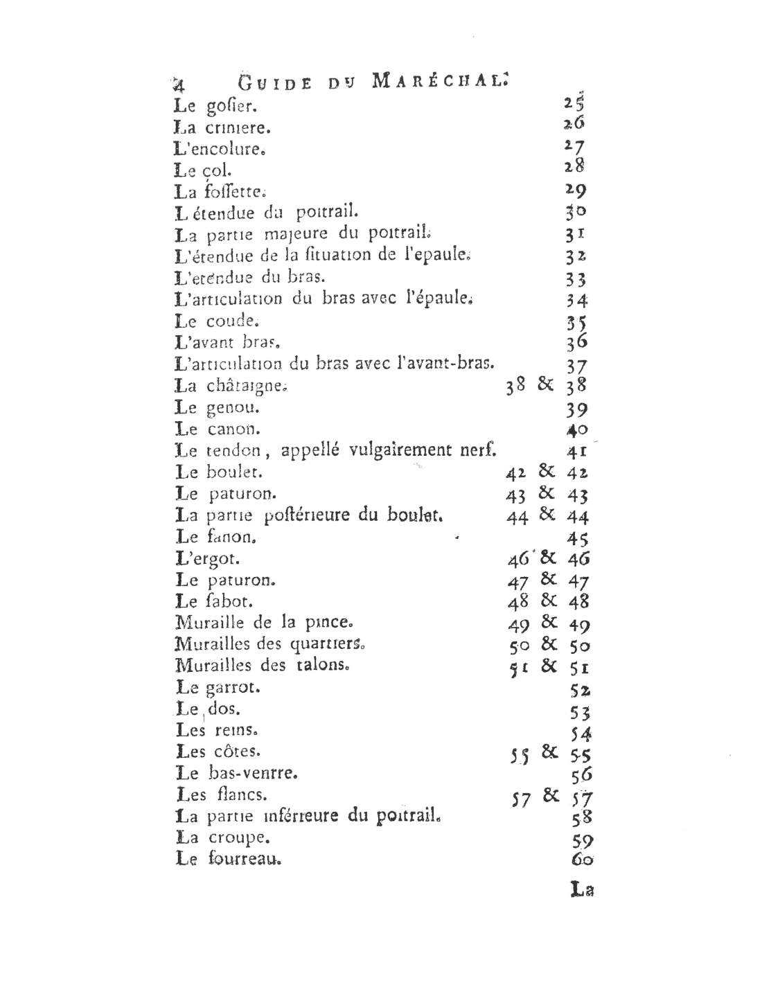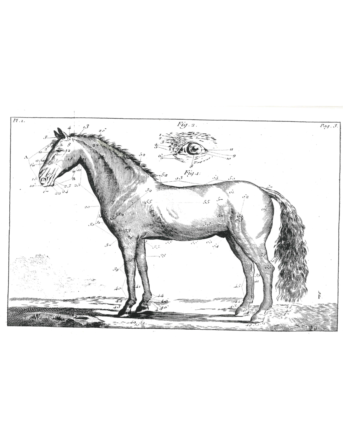 Il s'agit d'un ouvrage de LAFOSSE fils, poursuivant l'œuvre de son père, il met au point une ferrure rationnelle contre la tendance à faire les "jolis pieds" demandés par trop d'ignorants propriétaires de chevaux. Figures en taille douce.